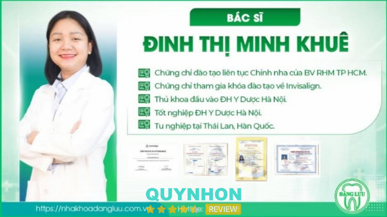 Bác sĩ Đinh Thị Minh Khuê là bác sĩ chỉnh nha đang công tác tại hệ thống Nha Khoa Đăng Lưu, được đào tạo bài bản và sở hữu nền tảng học thuật vững chắc. Với tư duy điều trị cẩn trọng, khoa học và sự tận tâm trong từng ca điều trị, bác sĩ Minh Khuê luôn hướng đến việc mang lại kết quả chỉnh nha tối ưu, phù hợp với tình trạng và nhu cầu lâu dài của từng khách hàng.